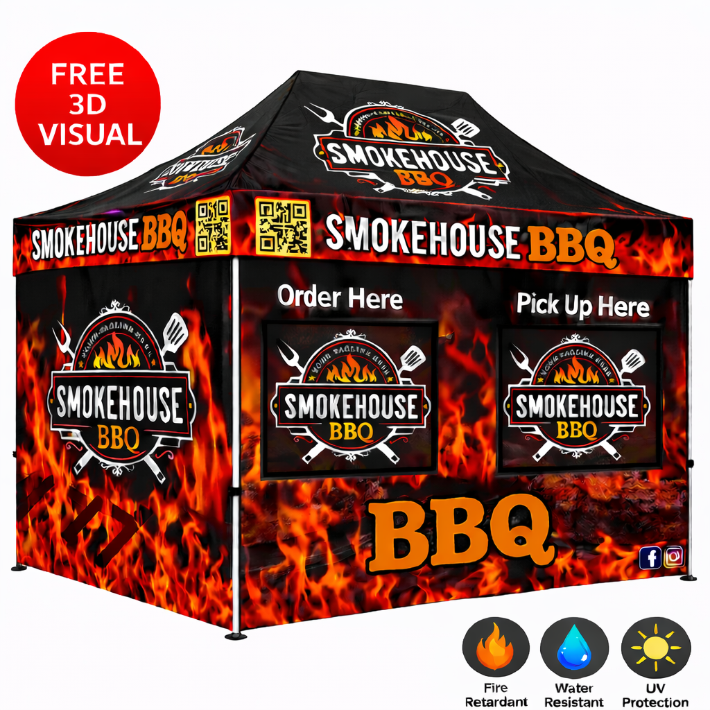 Paquete de carpa y toldo para puesto de comida personalizado de 10x15