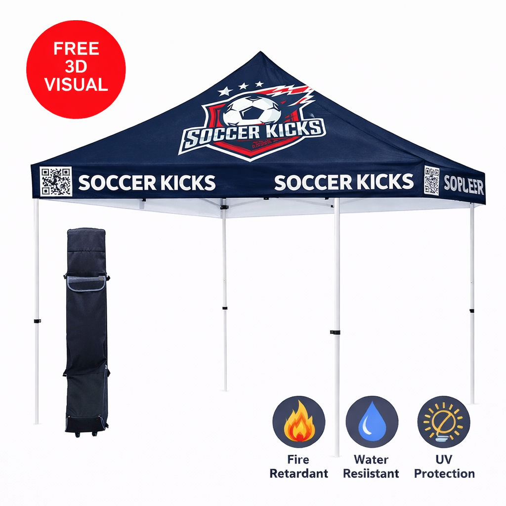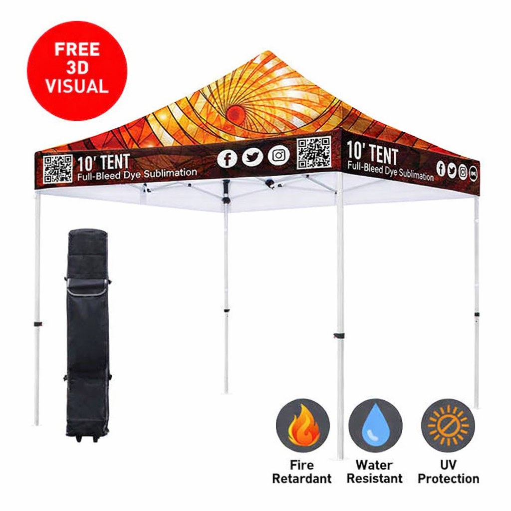 Carpa personalizada Premium 10x10 – Estructura hexagonal de aluminio (plateada) y faldón de 17" (impresión por sublimación de tinta)