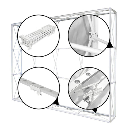 Our Popup hardware makes for quick and easy assembly at tradeshows, events and in-store marketing. The interior LED lights really plus up the backlit fabric prints, adding pop to this Popup display.