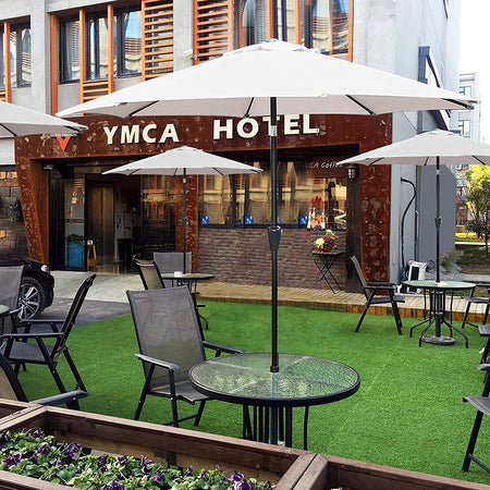 • SUN PROTECTION -- This outdoor umbrella with 9 ft. diameter shade your 42"- 54" round, square or rectangle table with 4 to 6 chairs, Ideal for both residential and commercial locations.