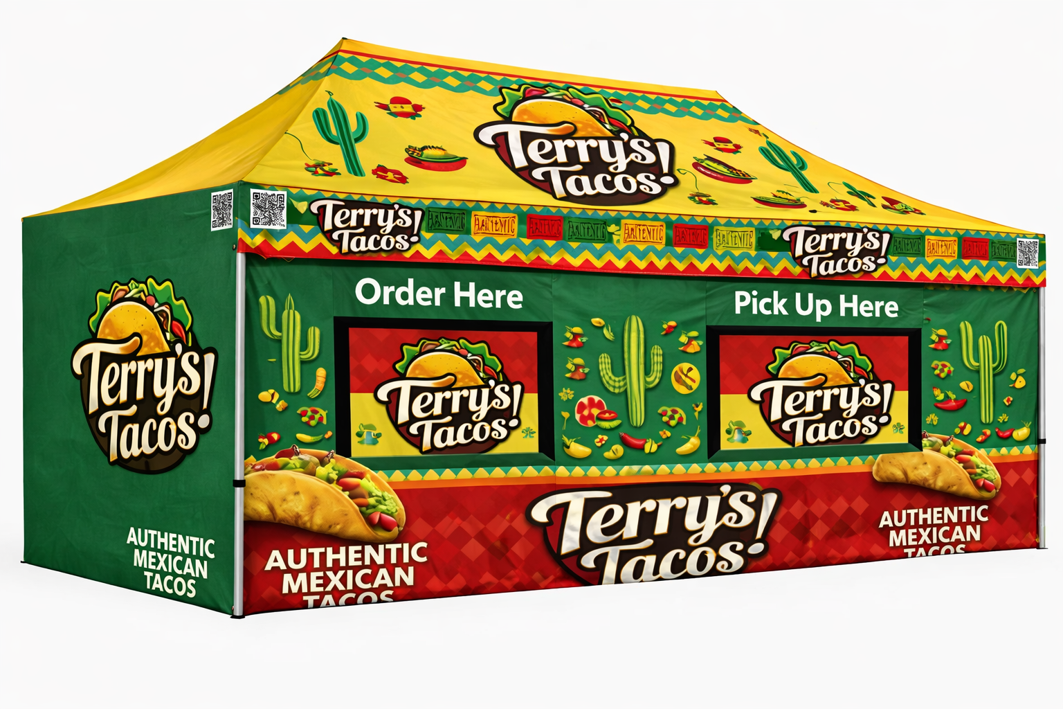 Make your food stand unforgettable with our premium 10x20 Custom Canopy Tent Package, designed especially for food vendors, farmers’ markets, and outdoor events. This compact, professional-grade canopy combines durability, ventilation, and full customization to help your booth stand out from the crowd.