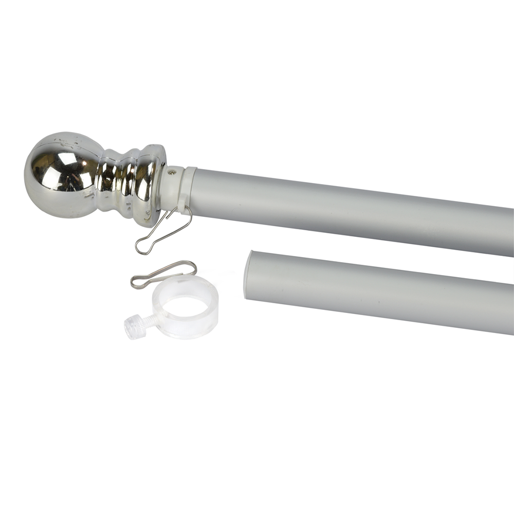 The tangle-free pole has a top section that spins on ball bearings, this will increase the life of your flag. Also included are clips to secure the flag into place and a plastic ring for use with grommets. Recommended for 2x3 or 3x5 flags.
