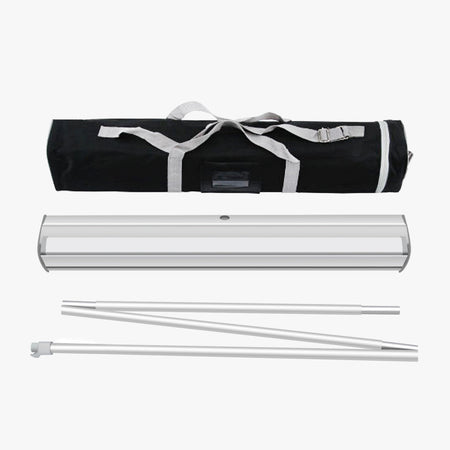 The retractable stand is very appealing and features a sleek and stealthy base. Use it to gain the attention of those passing by. . Stand includes a traveling bag.